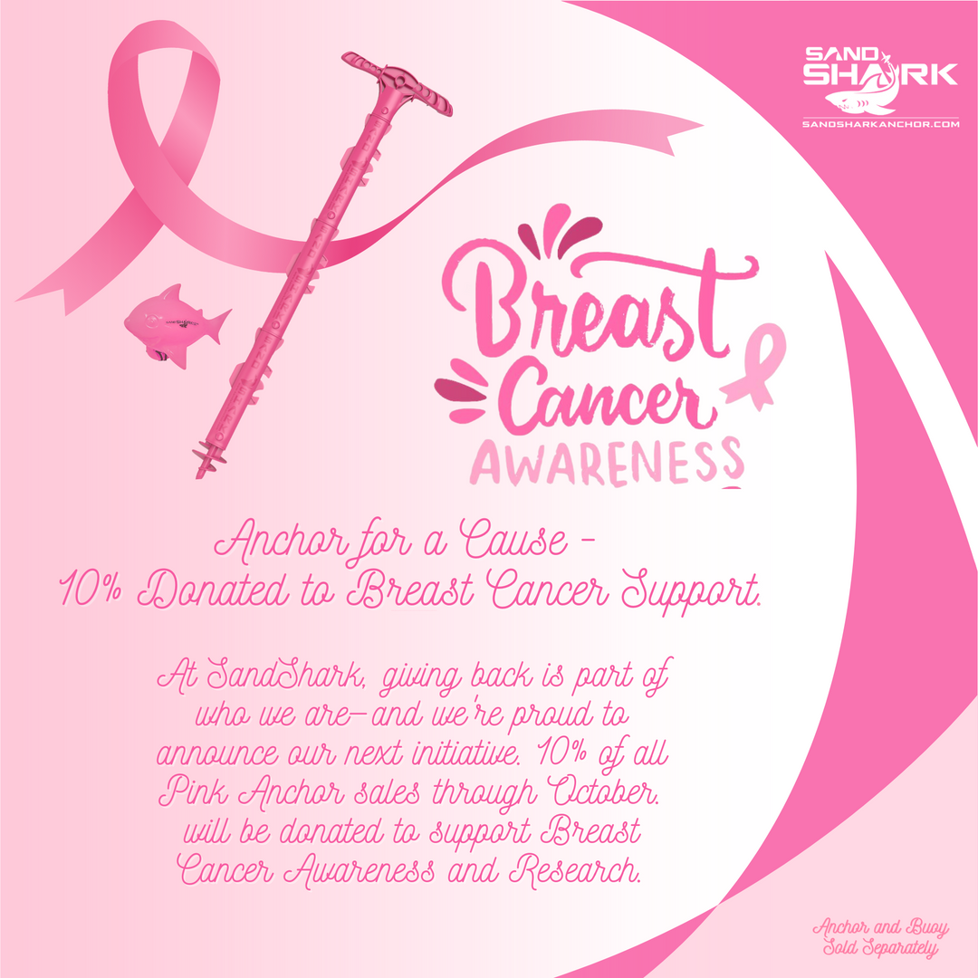 At SandShark, giving back is part of who we are—and we're proud to announce our next initiative. 10% of all Pink Anchor sales through October, will be donated to support Breast Cancer Awareness and Research.