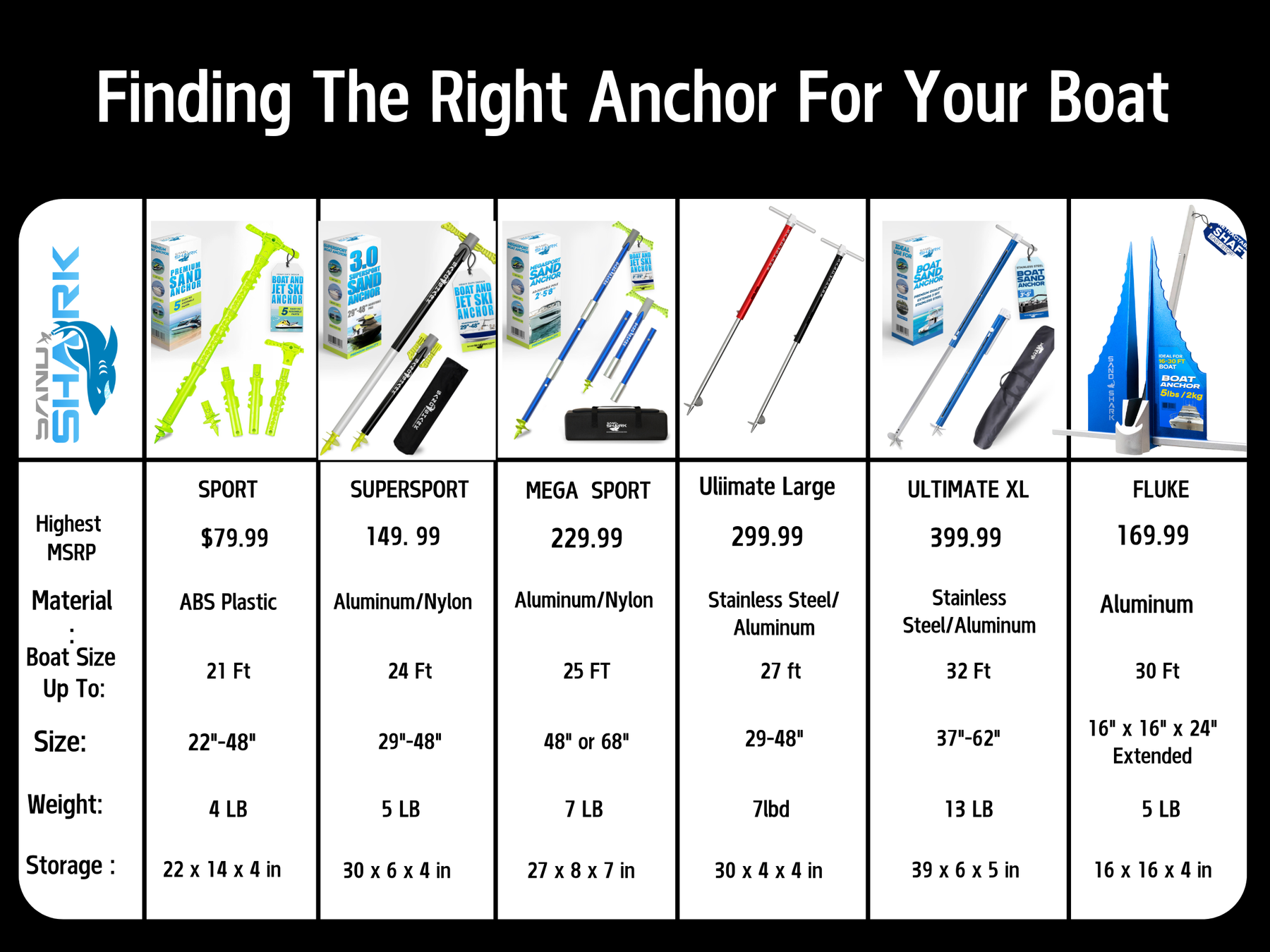 Overview: The Mega Sport Anchor by SandShark is designed to provide superior holding power and reliability for your boat or pontoon. With its easy-to-use, 3-piece design, this anchor is perfect for securing your watercraft in shallow waters, beaches, sandbars, or other areas. Say goodbye to drifting and ensure your boat stays securely in place—whether you're at the beach, sandbar, or out on the water. This anchor is your peace of mind for all your boating adventures.