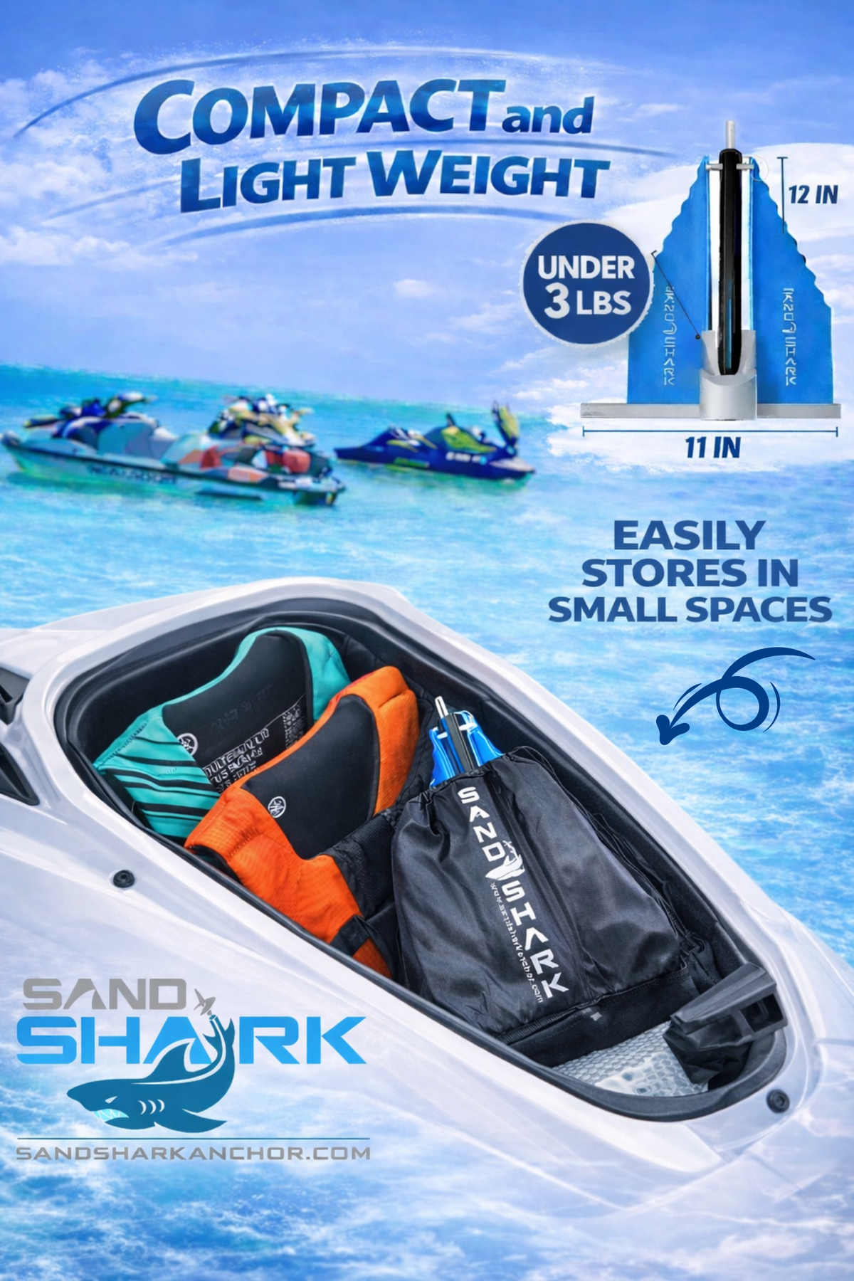 Order Now and make your time on the water safer and more enjoyable with the Mini Fluke Anchor by Sandshark—the ultimate anchoring solution for jet skis, PWCs, and small boats!